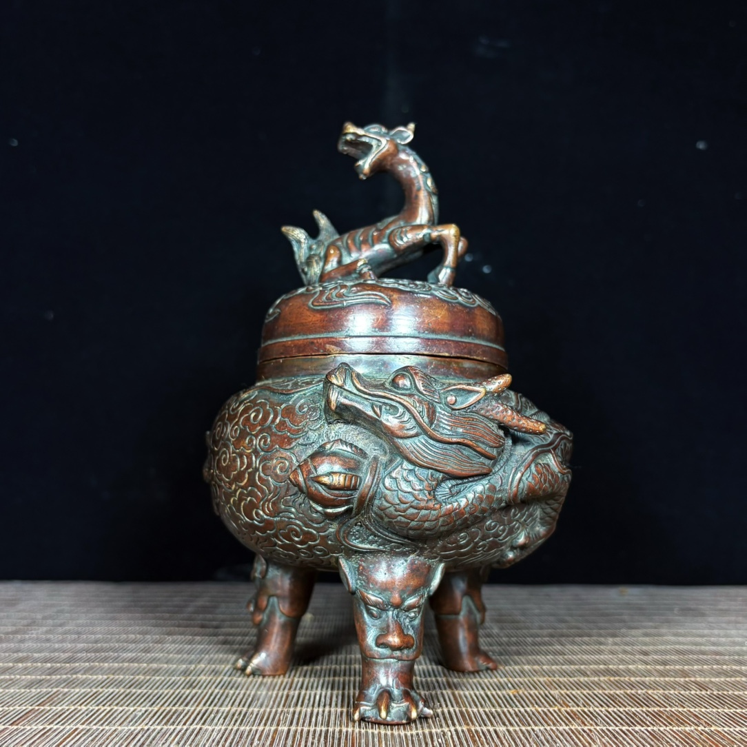 - 館蔵 古銅彫 雲紋 盤龍炉 古董品 時代物 賞物 貴重 稀少珍品 中国古美術 古美味 蔵出