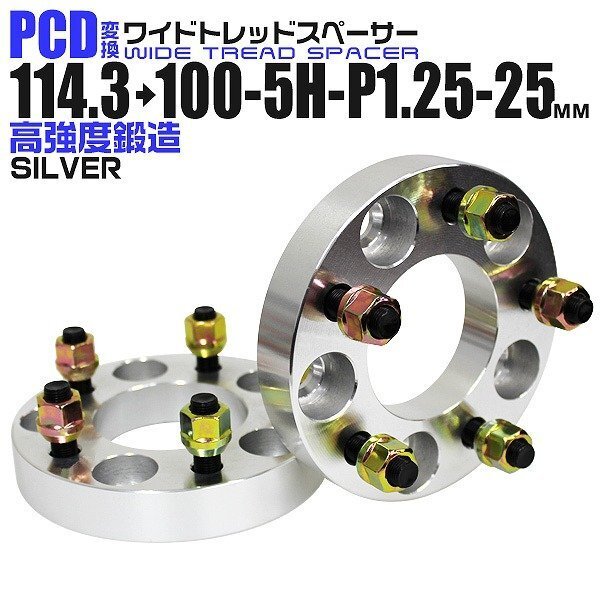 > Durax正規品 PCD変換 ワイドトレッドスペーサー 114.3→100-5H-P1.25-25mm 銀 5穴のPCD114.3mmからPCD100mm ホイールスペーサー
