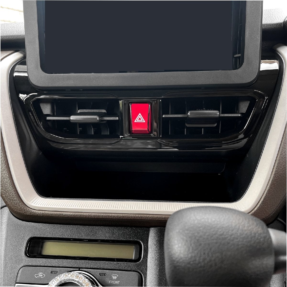 ■メーカー : POG ■商品名 : センター エアコン吹き出し口カバー LA850S LA860S ムーヴ用 MOVE用 2025年FMC後 エアコンふきだし ガーニッシュ ピアノブラック ■型 番 : TN-8172 ■定 価 : ■状 態 : 新品 中国製 ------------------------------------------------------------ センター部分のエアコン吹き出し口を装飾するカバーです。貼るだけで艶のあるパネルが高級感を演出し傷つきからも保護します。別売りのシフトパネルカバーとセットでご使用になると一層スタイリッシュな内装にイメージチェンジできます。