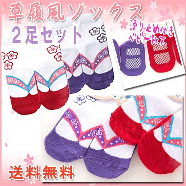 - 送料無料 草履風 ベビー ソックス 女の子 2足セット / キッズ 足袋 風 靴下 袴 男の子 お食い初め お宮参り 七五三 出産祝い