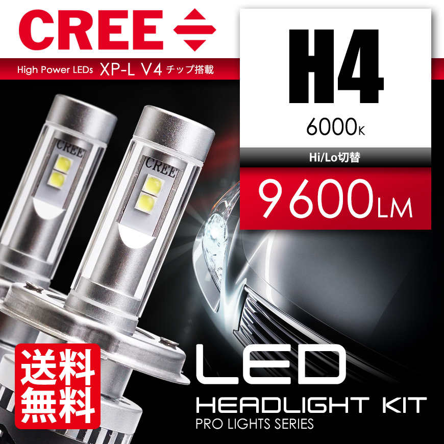 > LED ヘッドライト H4 HI/LO切替/CREE 計9600ルーメンHIDよりレンズ焼激減/最新 XP-L V4 チップ採用/爆光/宅配便 送料無料