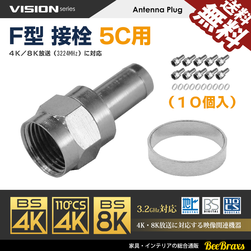 > F型 接栓 5C用 10個セット 791021 4K8K対応 アンテナケーブル 同軸ケーブル 地上デジタル 地デジ BS CS TV テレビ ネコポス 送料無料
