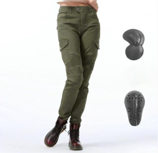 - 新入荷*高品質 レディース バイクウェア デニムパンツ ライダースパンツ 女性用 プロテクター付 バイクパンツ バイクジーンズ*グリーン