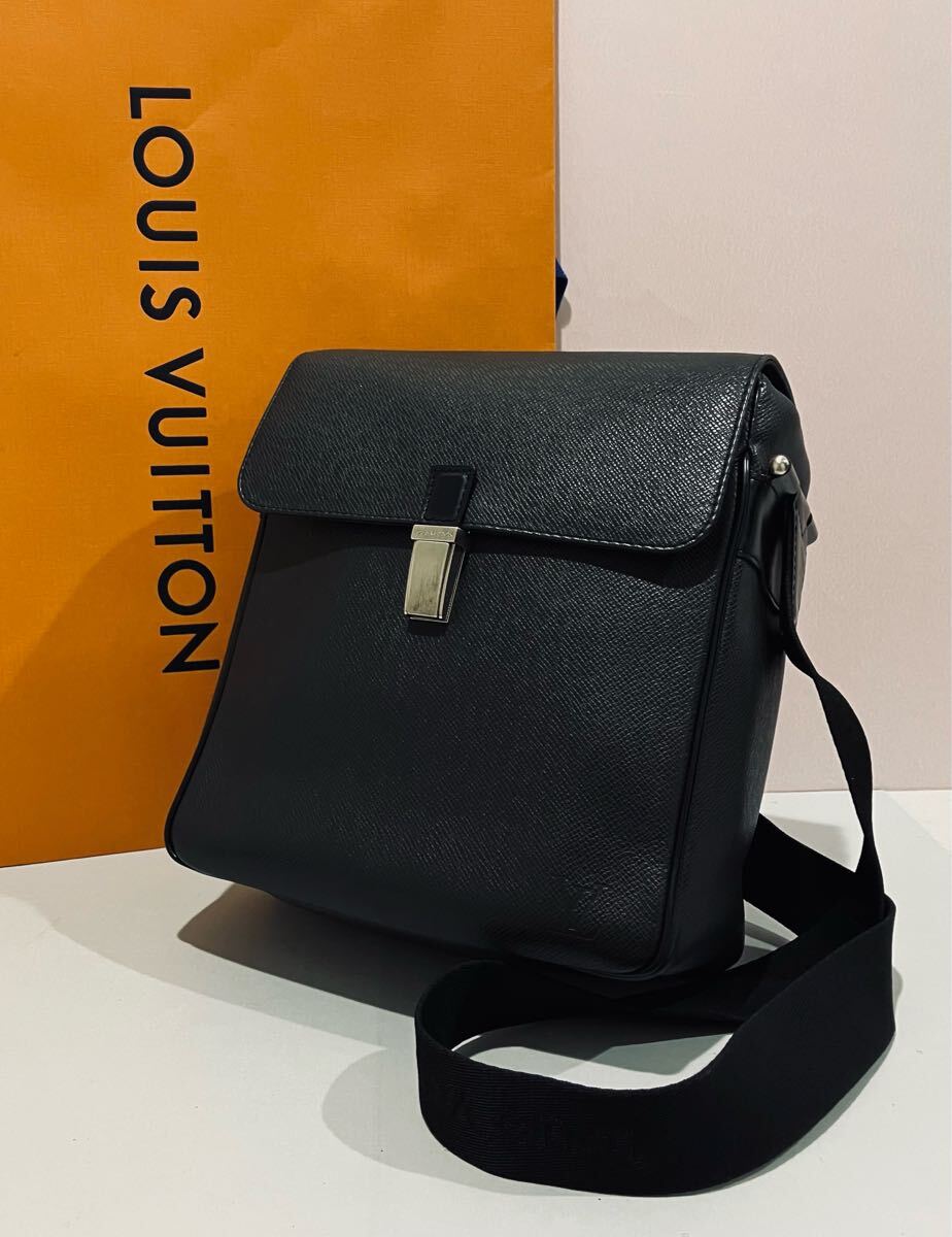 - LOUIS VUITTON 極上美品 ブラック レザー ショルダー バッグ ルイ・ヴィトン 黒 斜め掛け バック