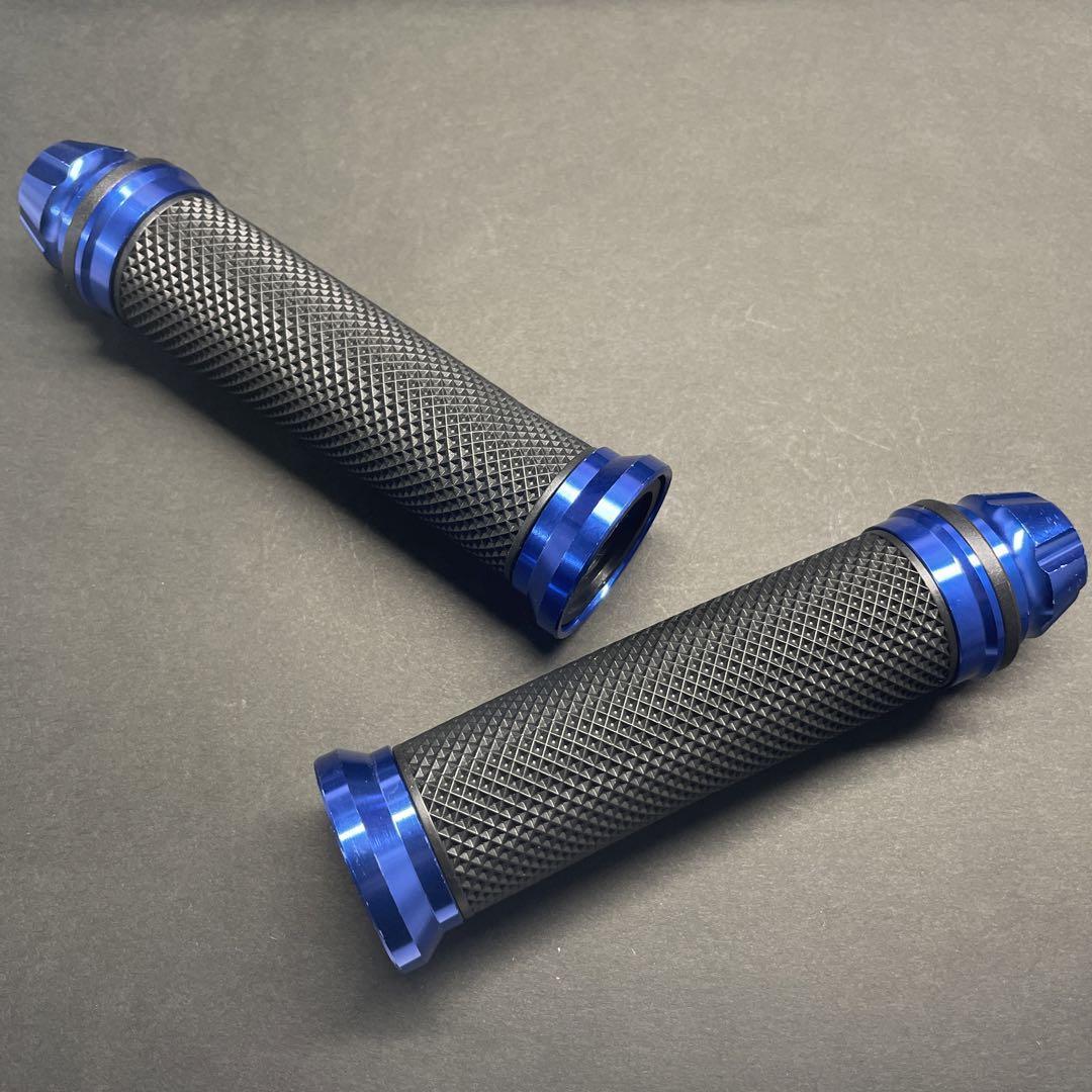 > アルミ製 ハンドル グリップ 22.2mm 青 ブルー バーエンド 一体型 ディオ エイプ モンキー ゴリラ リード ズーマー ジョグ アクシス90