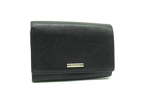 > BURBERRY バーバリー レザー 二つ折り 財布 ウォレット 小銭入れ 札入れ カード入れ レディース メンズ ブラック系 DI6014