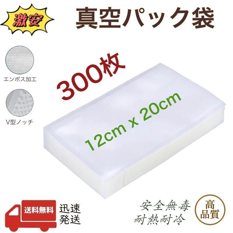 - 真空パック袋 12x20cm エンボス加工 真空パック機専用袋 12-20 袋 ポリ袋 90μ 厚手 脱気 密封 真空保存 120×200㎜ 300枚 業務用 家庭用