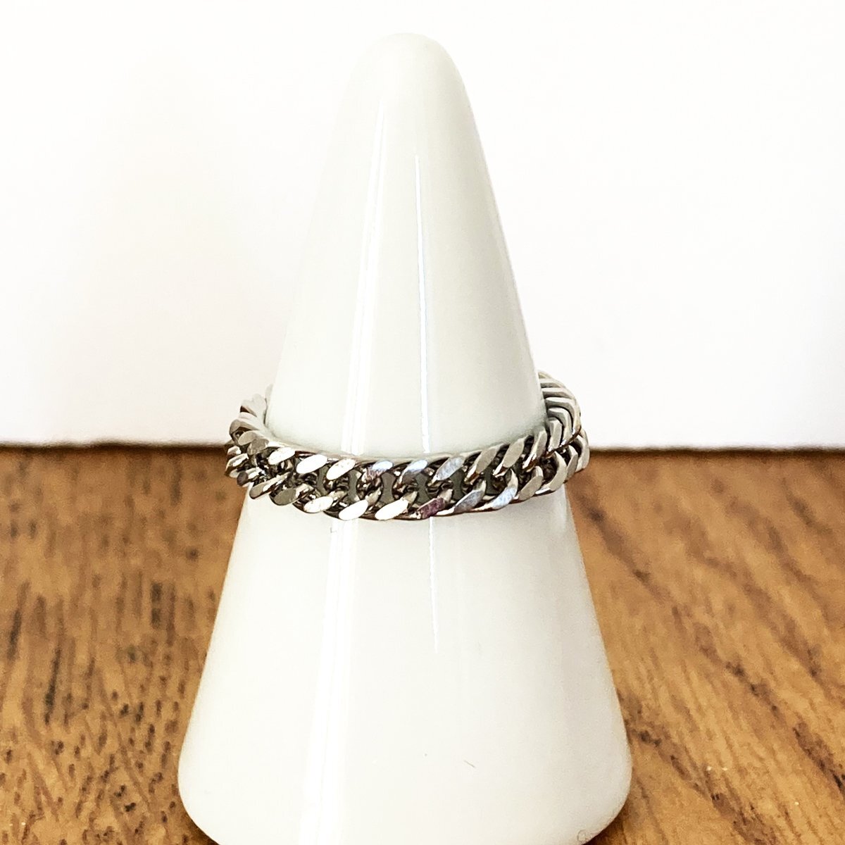 - 9号 チェーンリング/指輪 ステンレスチェーンリング ダブル喜平4面カット 約3.8mm