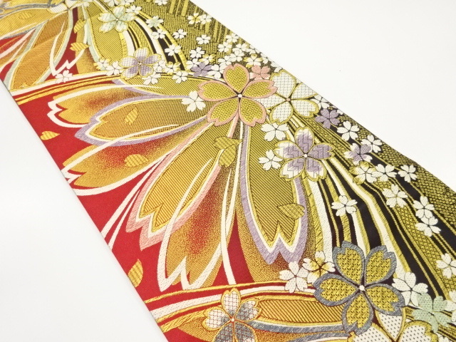 > 美品 桜模様織り出し 振袖用 袋帯 (AJAJ1K-010)