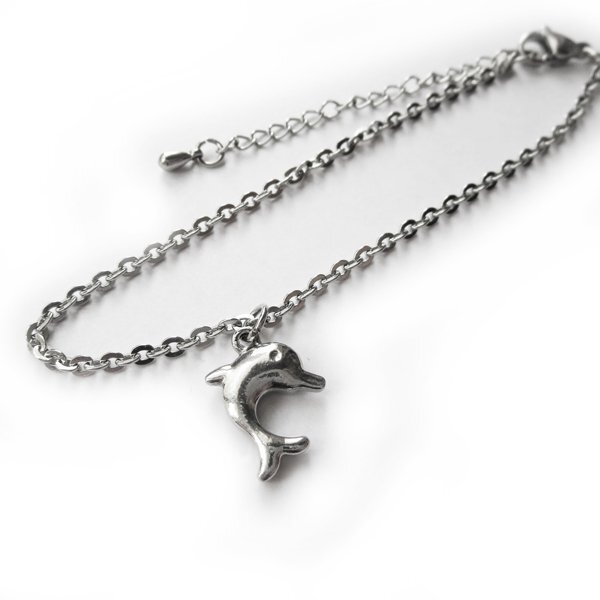 - ステンレスチェーン ミニイルカ ドルフィン アンクレット 25cm(21+4cmアジャスター) 2.4mm幅平小豆