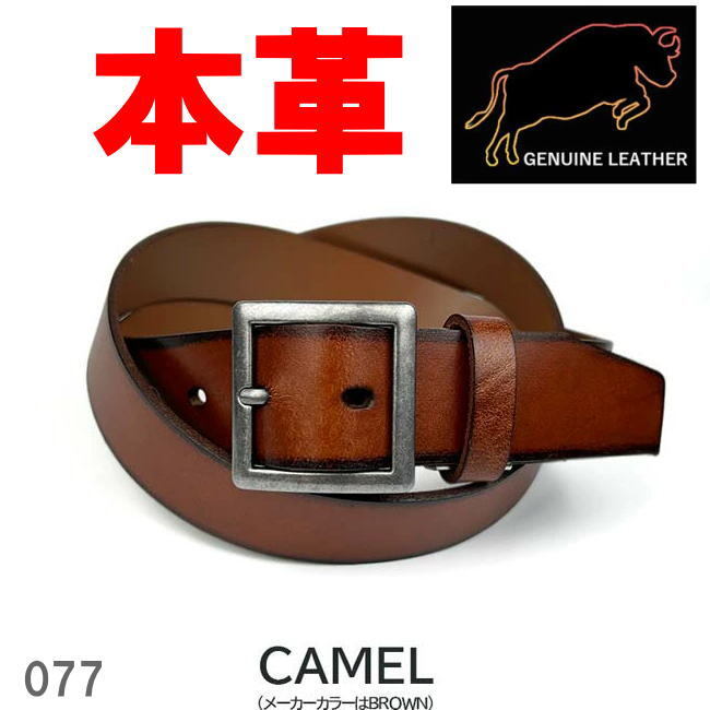 - キャメル ジェニュインレザー 本革 ギャリソンバックル ベルト 3.5cm 077