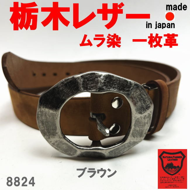 - ブラウン 栃木レザー ムラ染め 8824 無骨な堅牢性 牛革 ベルト 日本製