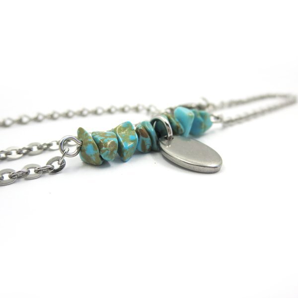 - ステンレスチェーンアンクレット 人工ターコイズ&チャーム付き 2.4mm幅 25cm(21cm+4cmアジャスター)