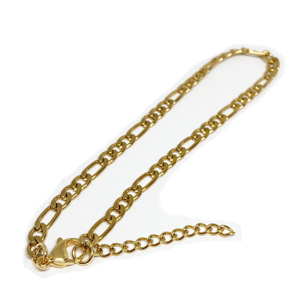 - ステンレスアンクレット フィガロ ゴールドチェーン幅4.6mm 26cm(22cm+4cmアジャスター) GN67