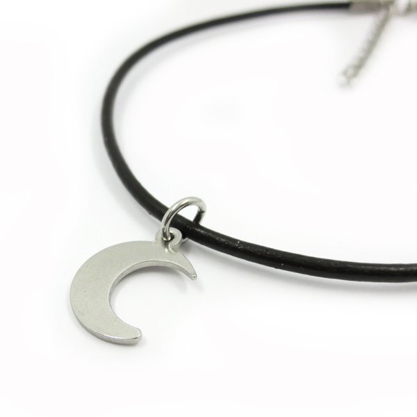 - レザー 革紐 アンクレット三日月チャーム付き ステンレス金具 26cm(22cm+4cmアジャスター)