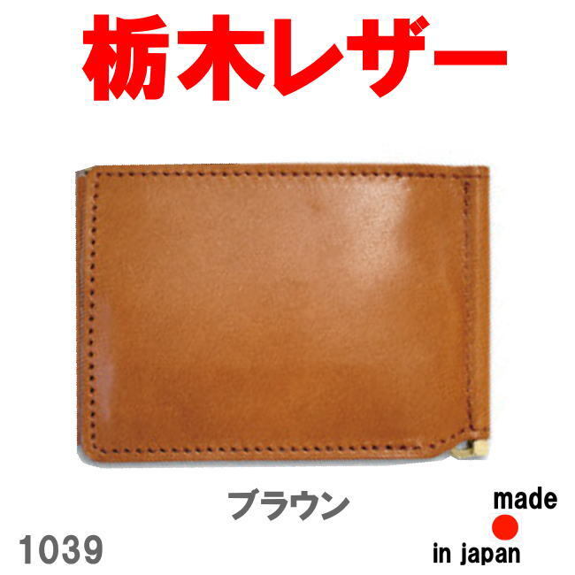 - ブラウン 栃木レザー マネークリップ 財布 牛革 1039 ビジネス コンパクト