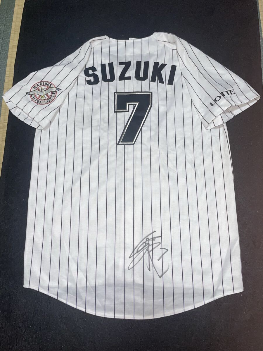> ゆうパック匿名送料無料 タグ付き良好 千葉ロッテマリーンズ ロッテ 鈴木大地 ユニフォーム デサント製 Lサイズ 刺繍 直筆サイン入 ホーム