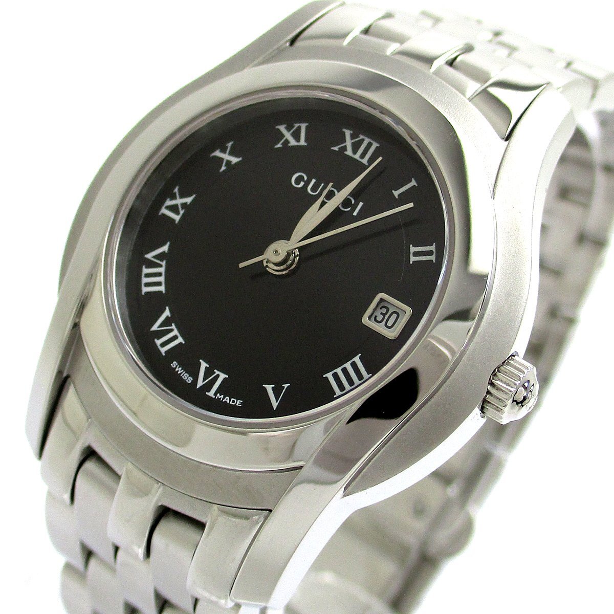 > グッチ Gクラス 黒文字盤 レディース 5500L 婦人 時計 GUCCI 腕時計 クォーツ 保証書 婦人 ブラック クリーニング済