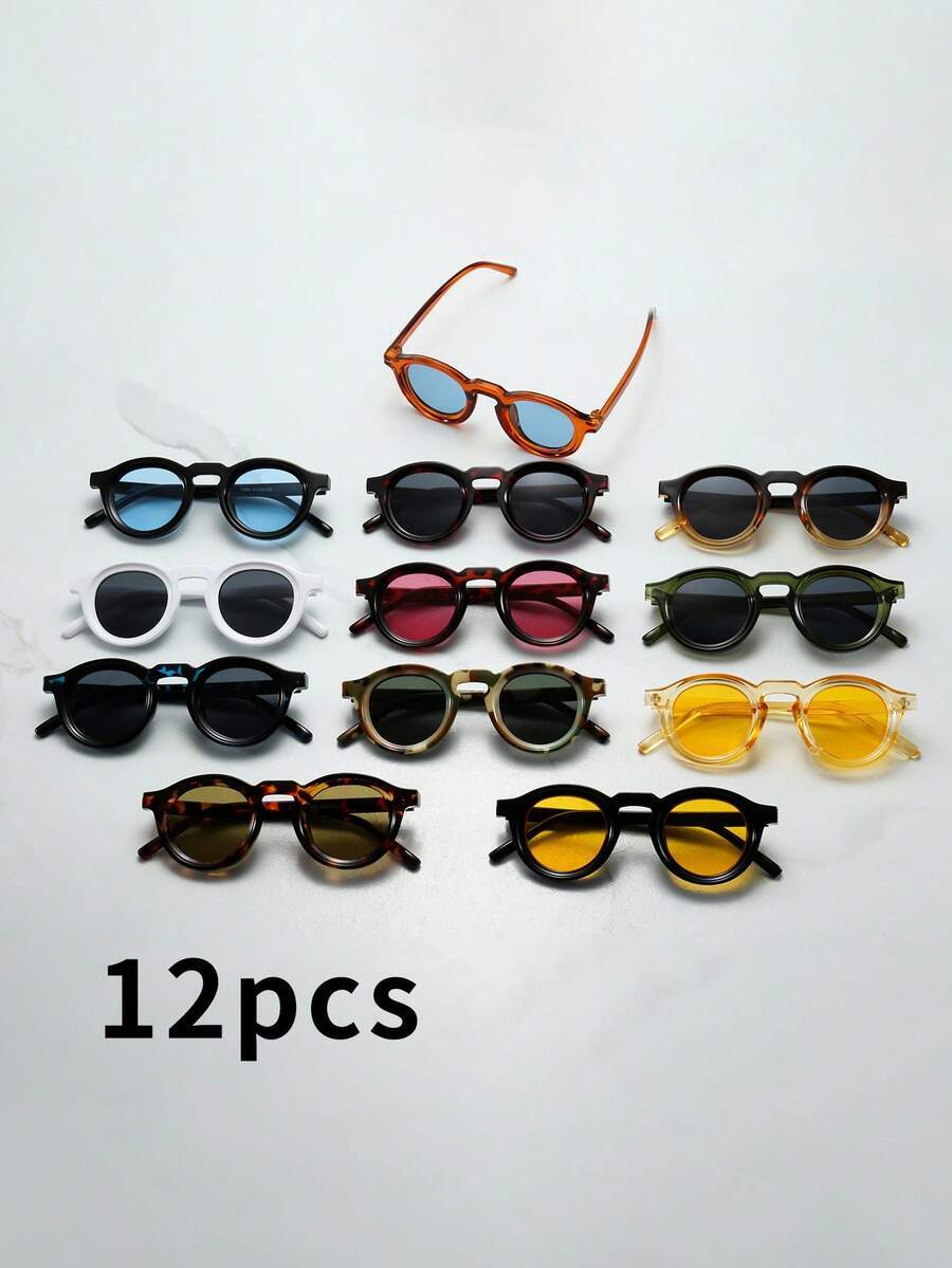 > アクセサリー メンズ アイアクセサリー 12個セット レトロラウンドフレーム シンプルファッションメガネ (運転、旅行、バカンス、