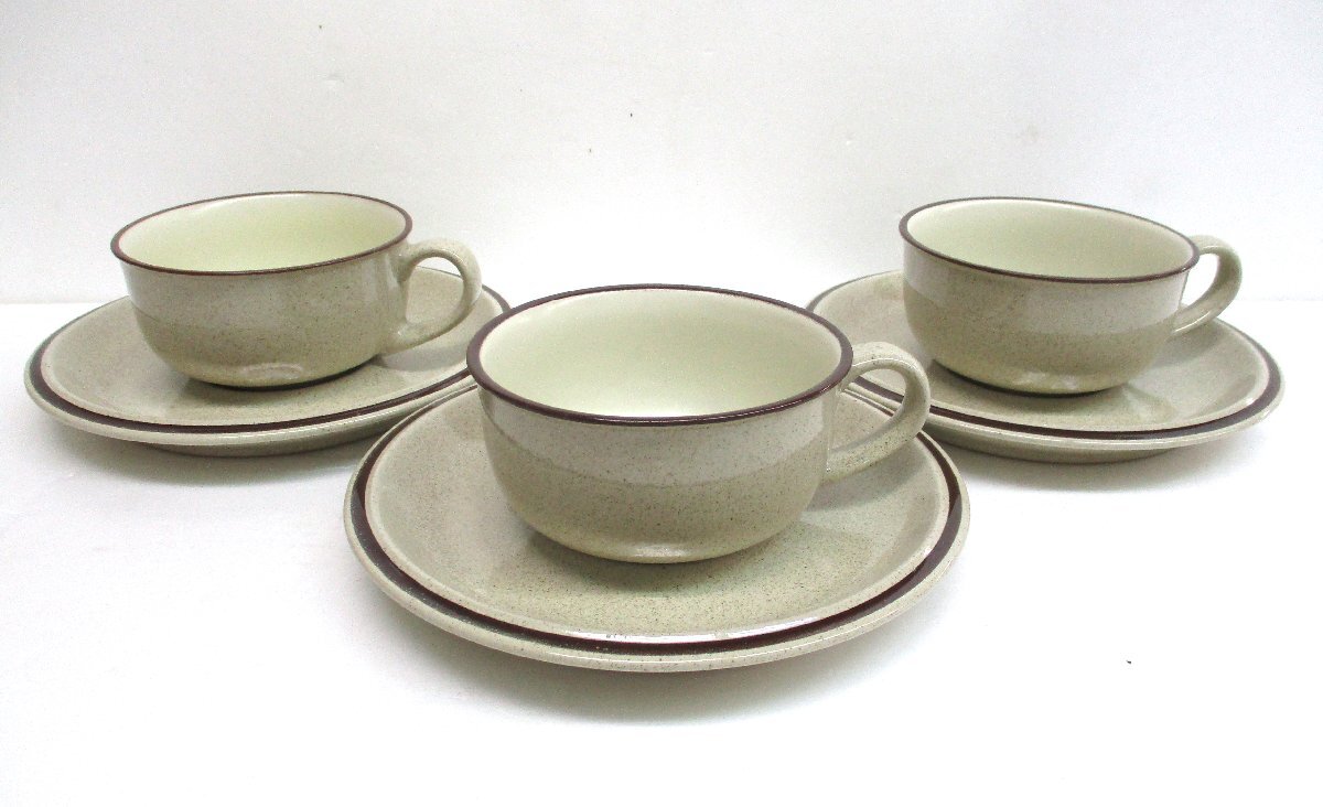 - ★ 101685 カップ&ソーサー Noritake ノリタケ 3客 レトロ FolkStone ストーンウェア GENUINE STONEWARE 中古 ★