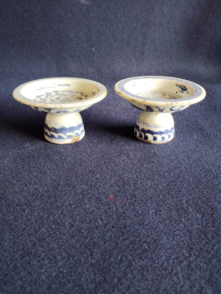 - 中国美術 清時代 青花高足皿 一対 時代物 唐物