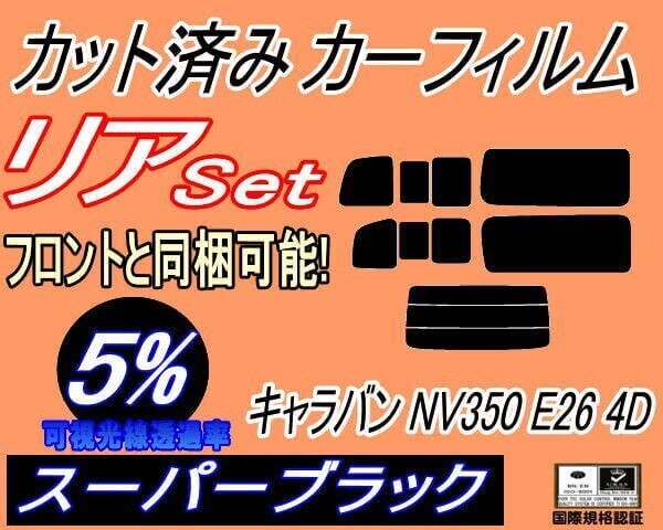 > カーフィルム スーパーブラック カット済み リアセット キャラバン NV350 E26 4ドア 9枚 (b) スモーク 4ドア用 VR2E26 VW2E26 ニッサン