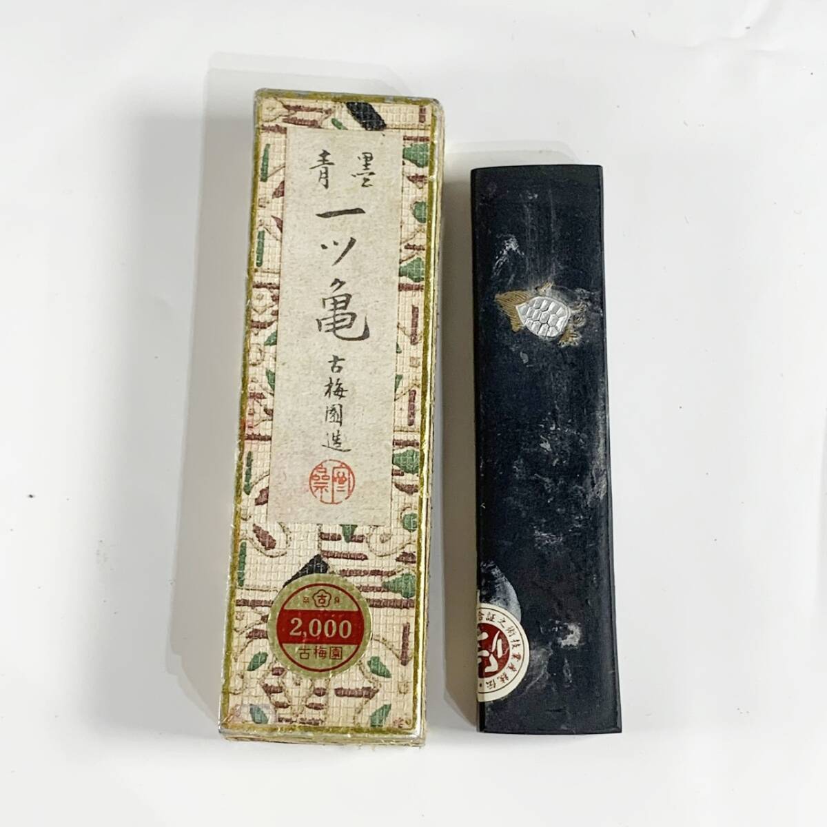 - usH-3349【書道用墨】古梅園造 『青墨 一ツ亀』紀州産松煙 日本墨 約27g 未使用品 長期保管品 現状品