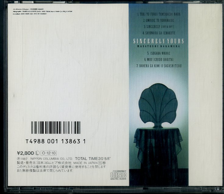 D00109450/CD/中村雅俊「シンシアリー・ユアーズ(1987年)」