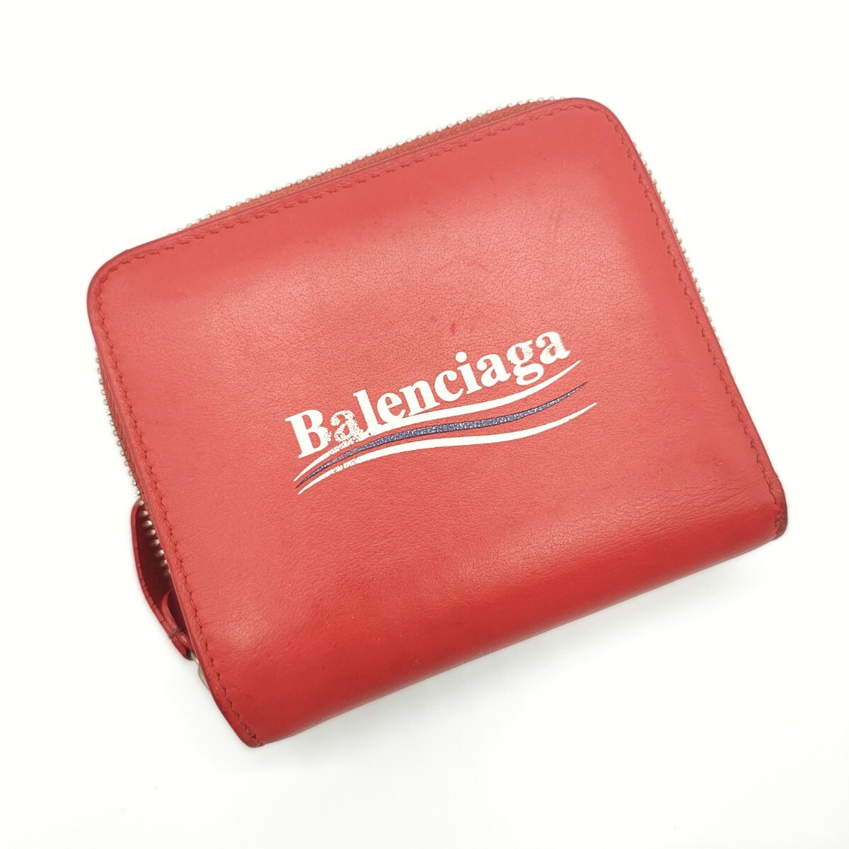 - 美品 バレンシアガ 二つ折り財布 ロゴ ジップ レッド