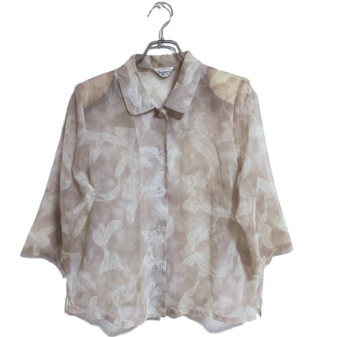 - Brasserie シャツ 七分袖 ベージュ L シアー リボン柄 薄手 春夏