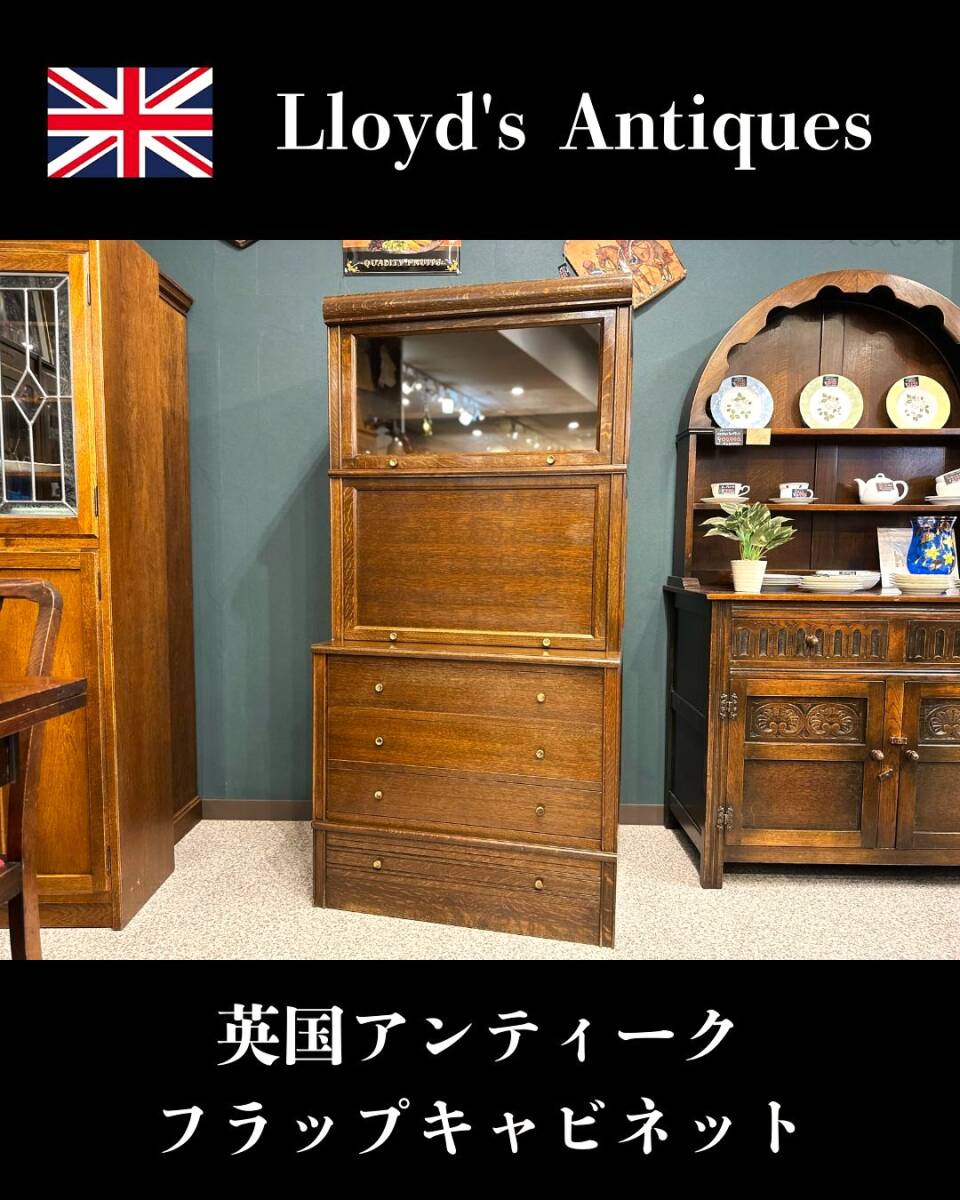 - 5J05 Lloyd’s Antiques ロイズ・アンティークス イギリスアンティークオークフラップドアキャビネット チェスト コレクションケース