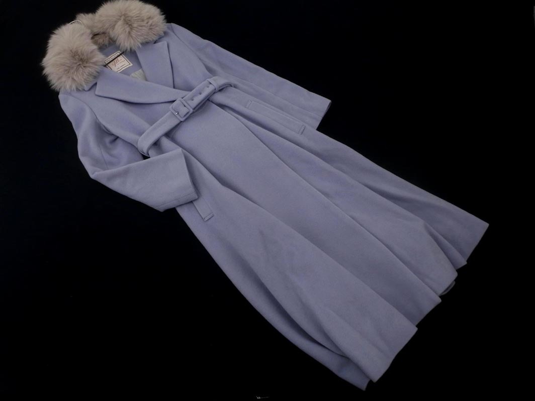 - JILLSTUART ジルスチュアート ウール混 フォックスファーカラー ロング コート sizeM/ブルー ◇■ ☆ fjb0 レディース