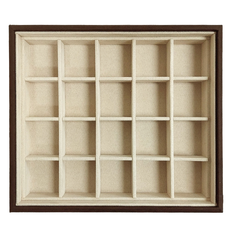 - 重ねて使えるプロ仕様のストックトレイ・トレーの アクセサリー20個仕切り ブラウン スエード調