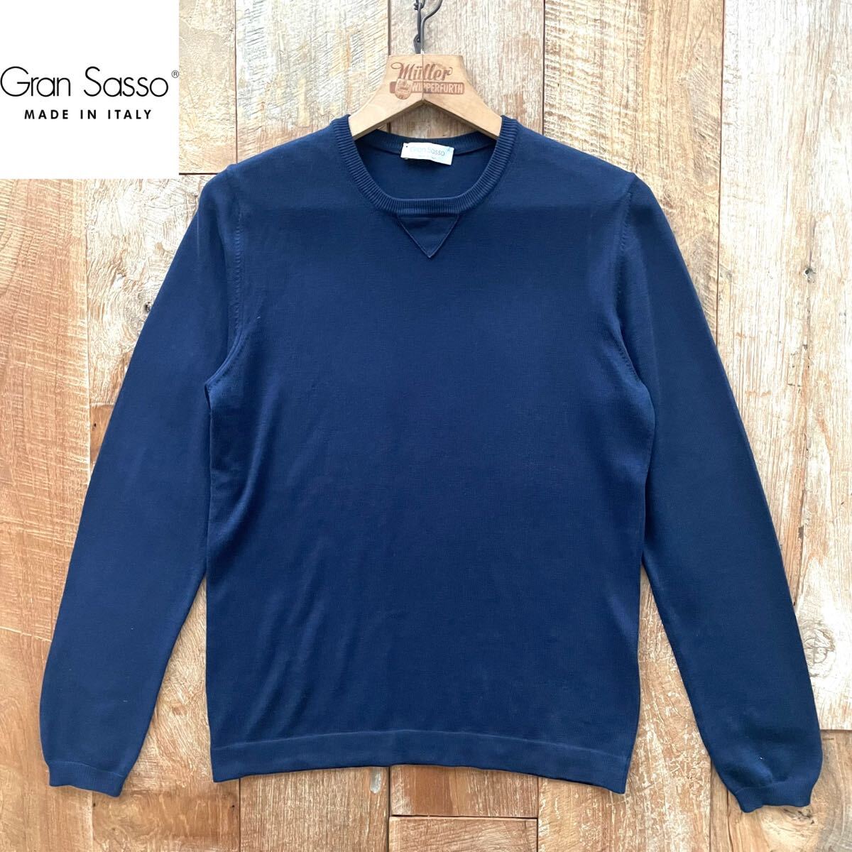 - 【極美品】Gran Sasso グランサッソ クルーネック コットン ニット トレーナー 44 ネイビー BEAMSF取扱