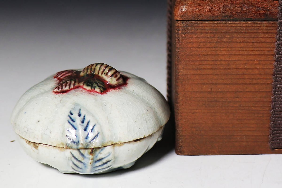 - 【桃】茶道具:李朝辰砂染付果実香合