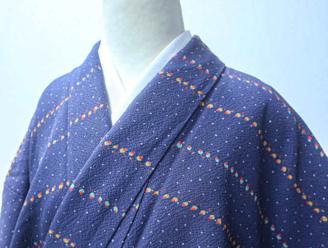 - 《京都一輝堂》【着物】 小紋 横縞 つぼみ文様 仕付け付き 身丈約161.5cm 裄丈約64cm 24Z-893