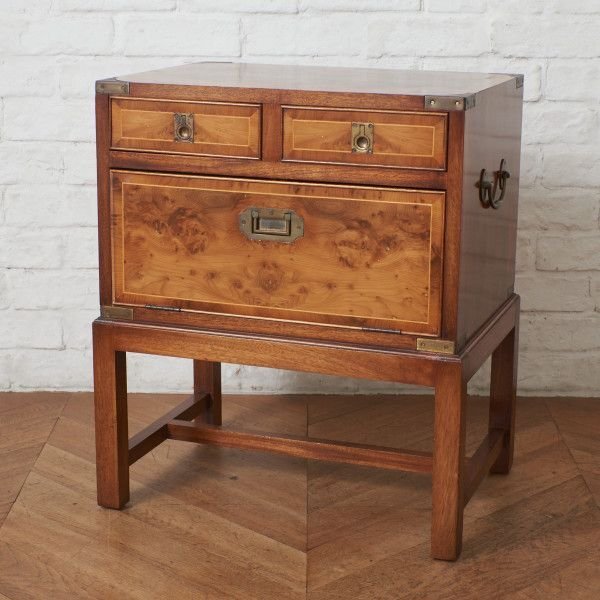 > IZ94977F★英国 Kennedy サイドキャビネット キャンペーンスタイル サイドテーブル イチイ 飾り台 ベッドサイド 収納 クラシック モダン