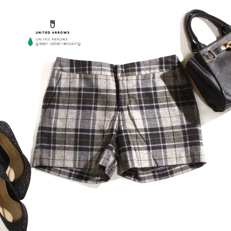 - 美品 Victorian Lambswool ユナイテッドアローズ グリーンレーベルリラクシング 秋 冬 チェック柄 ウールパンツ ショートパンツ 40 グレー