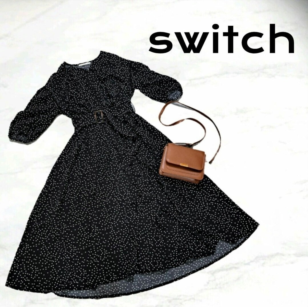 - 【美品】switch 水玉 ワンピース ホワイト ブラック モノトーン ベルト 大人可愛い ドット F