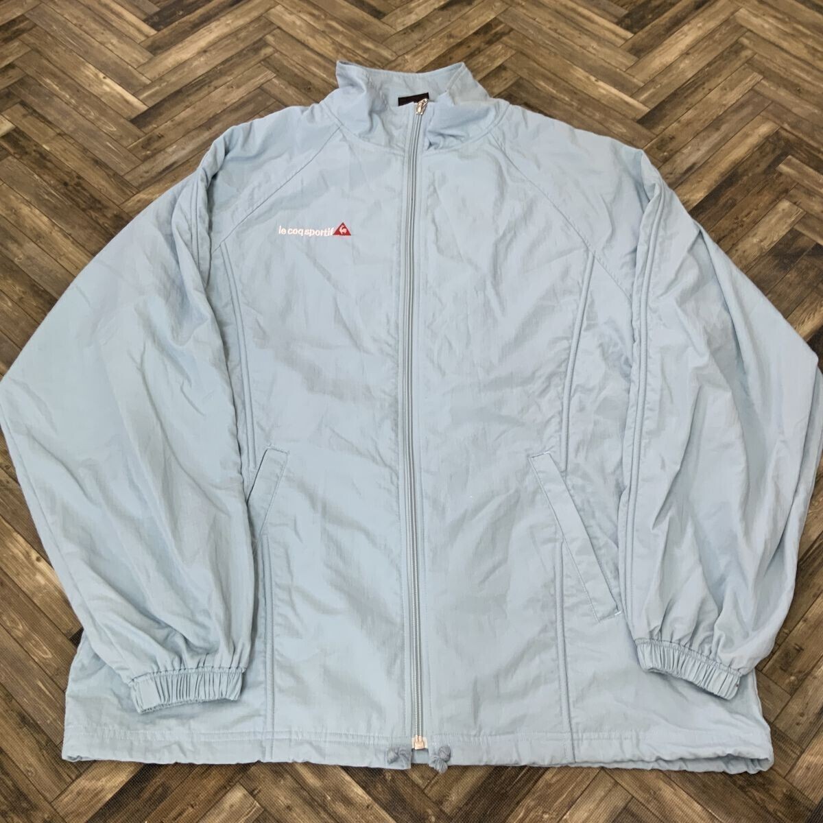 > HY154 ルコック ナイロンジャケット スポーツウェア 水色 メンズL 袖に汚れあり