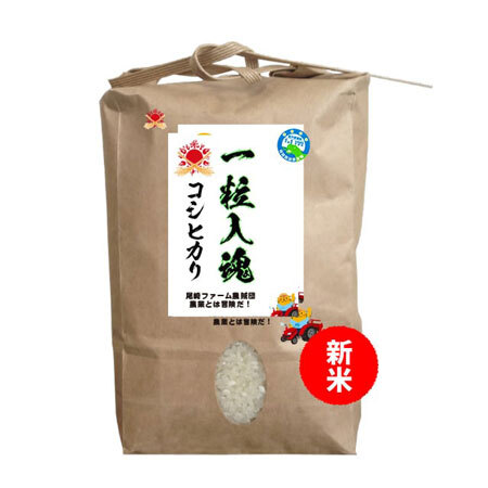 - 減農薬無化学肥料栽培米・一粒入魂米コシヒカリ 5Kg入り 2025年度産新米 入荷