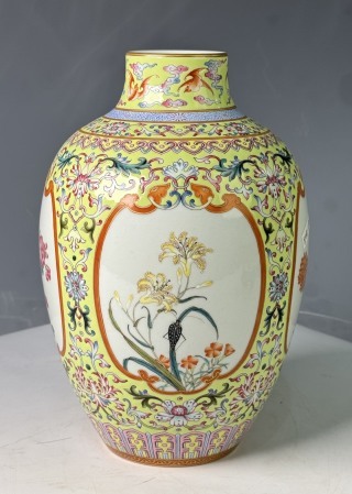 - 『三希堂』 中国骨董 磁器 清時代 [大清乾隆年製] 粉彩纏枝蓮花瓶 時代物 古陶磁 古賞物 高20cm 口径5cm 底径6.8cm C51