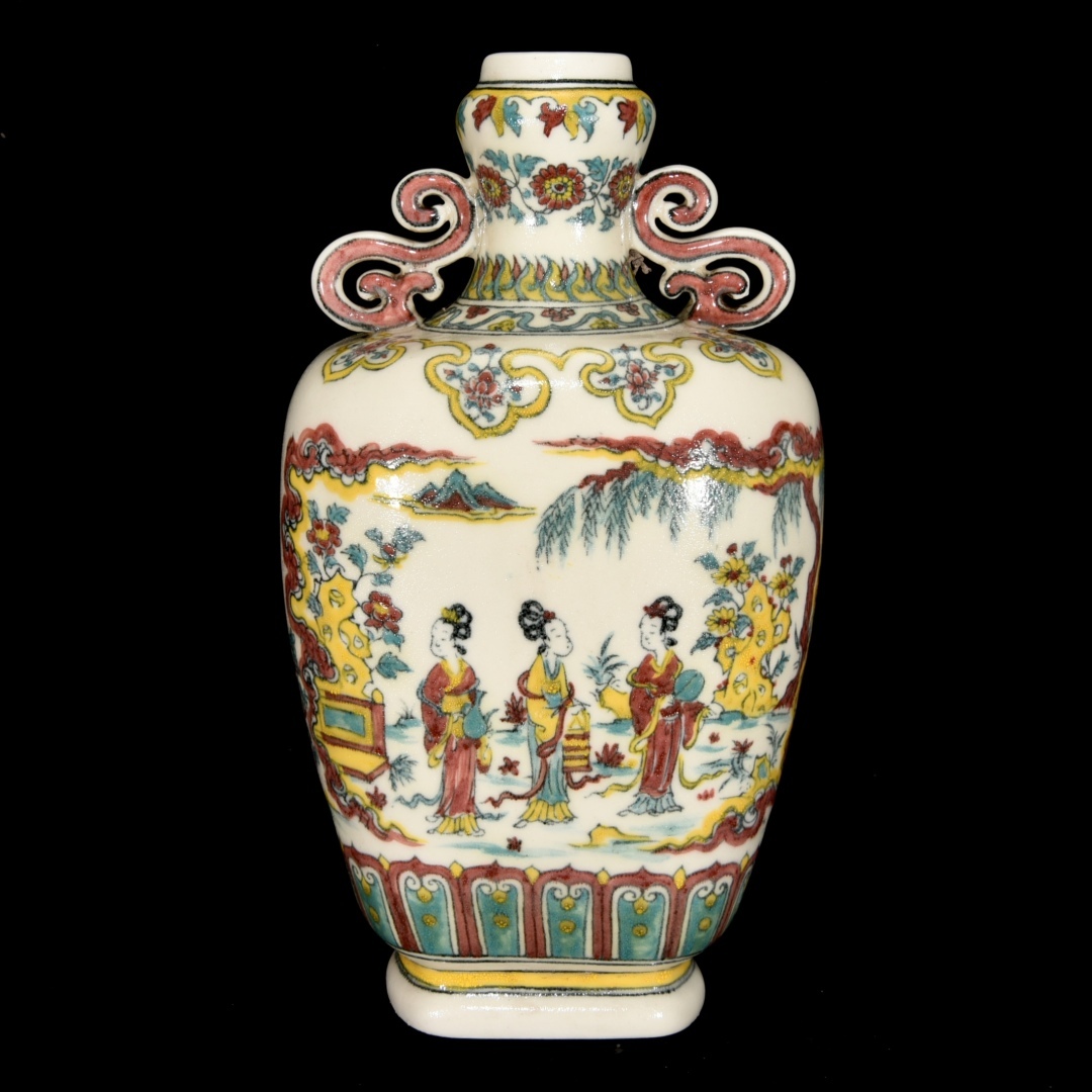- 旧 明 彩釉 人物故事紋 双耳瓶 唐磁 古陶磁器 陶芸 中国古美術 古賞物 古置物 唐物 S710