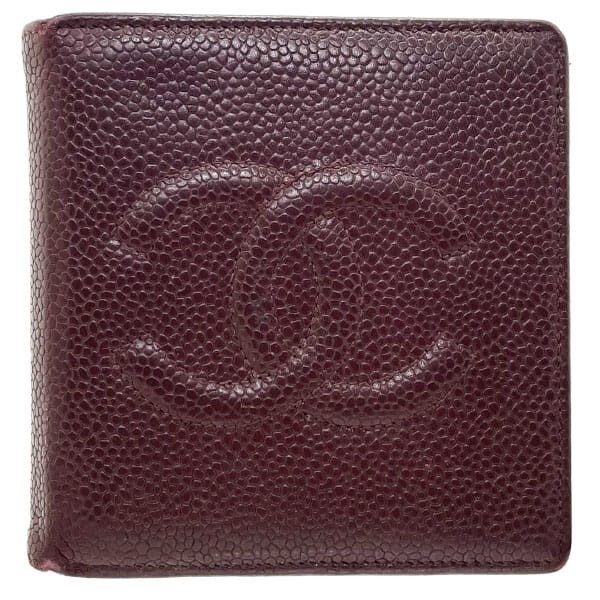 - 15782 シャネル 財布 ココマーク 二つ折り財布 キャビアスキン レザー 革 ダークブラウン 濃茶 こげ茶 CHANEL