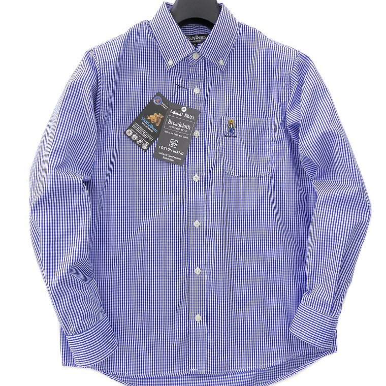 > 新品 テディベア ギンガムチェック シャツ LL 青 【TD251073_78_LL】 Teddy Bear ロゴ 刺繍 ボタンダウン 長袖 チェック メンズ