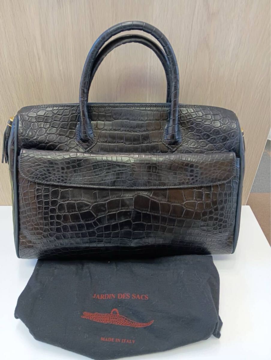 - 【中古品】JARDIN DES SACSジャルダンデサック クロコ レザー ハンドバッグ 黒ブラック 肩掛け 手提げ バッグかばん 保存袋付き 現状品