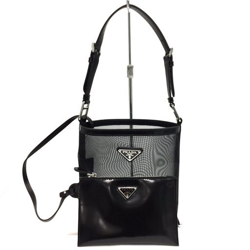 > 新品同様 PRADA 1BE061 RETE/SPAZZO HOO/NER バケットバッグ クロスボディバッグ レディース 付属品あり 未使用品 UE