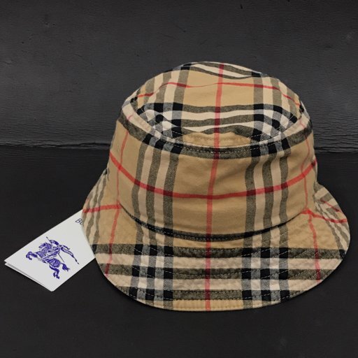 > 新品同様 BURBERRY 8075657/A7026/M サイズ M ノバチェック柄 バケットハット 帽子 タグ付 ベージュ系 イタリア製 UE