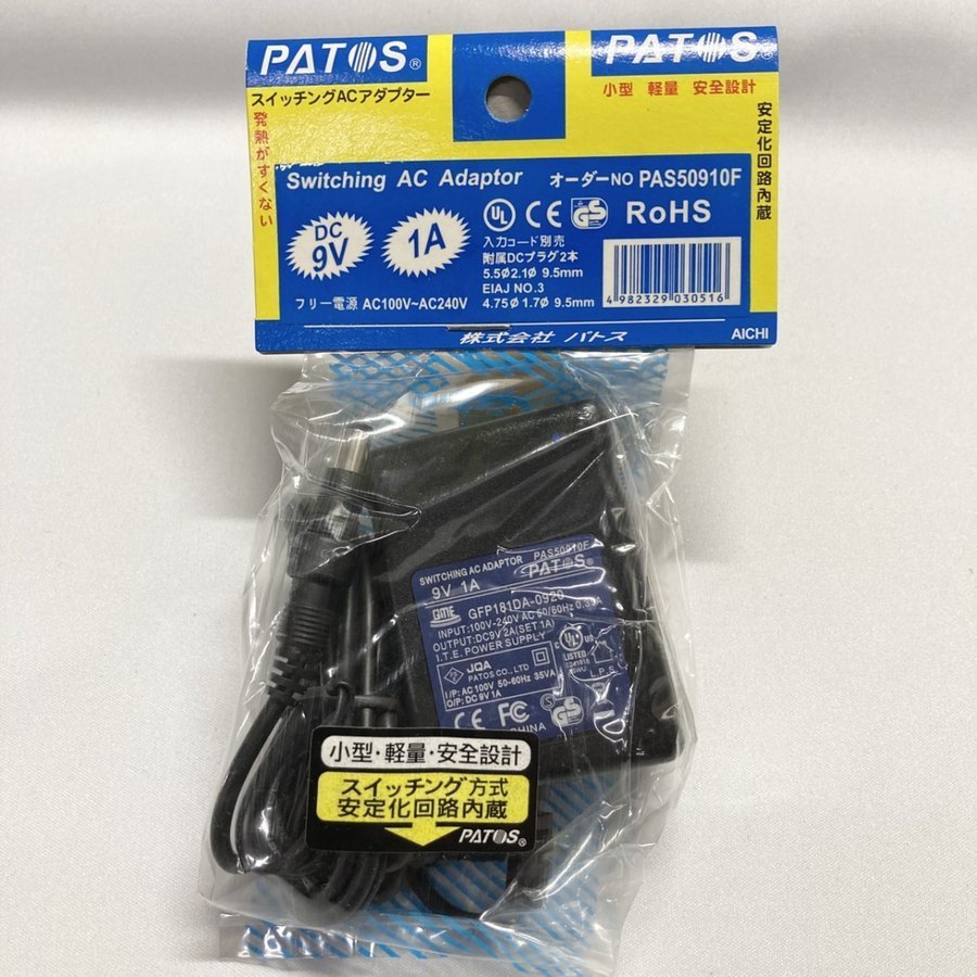- 【安心の国内メーカー品】PATOS(パトス) 汎用スイッチングACアダプター DC9V1A PAS50910F 直流安定化出力電源【PSE RoHS対応】返品交換不可