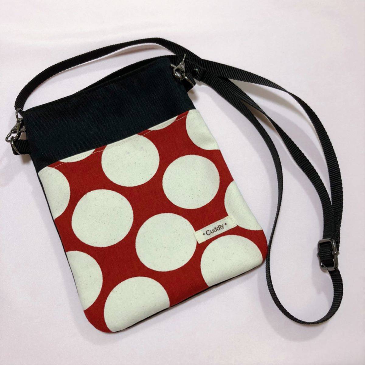- 送料込み! 大人可愛い 大きなドット柄 赤×白 スマホショルダー スマホ用ポシェット スマホ用ポーチ 再販3